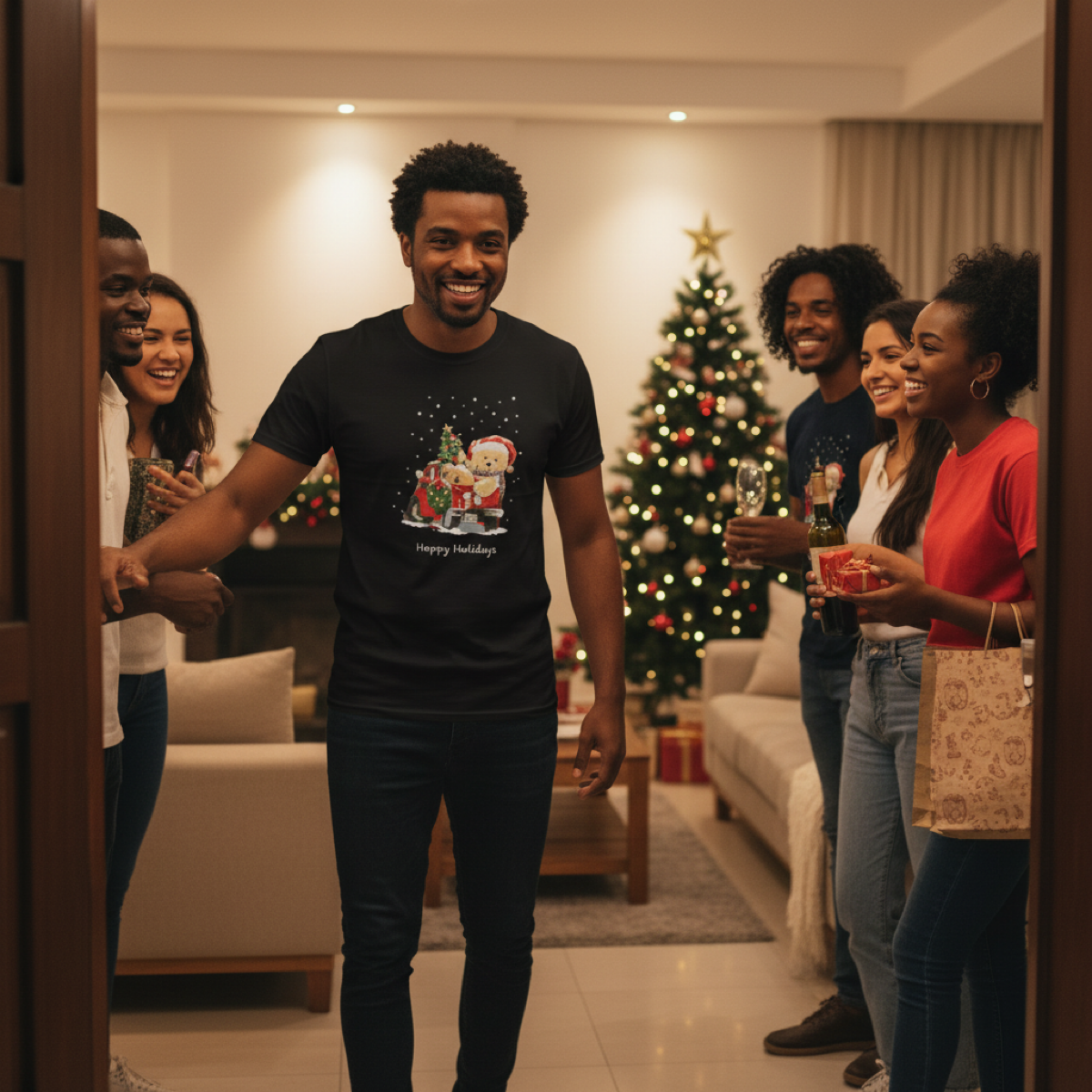 Um clássico natalício reinventado: a icónica pick-up vermelha vista de trás, carregada de espírito festivo. Produzida em 100% algodão, com impressão de alta qualidade. Um must-have para adultos que adoram o Natal.